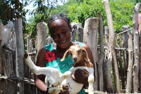 The project to breed bigger goats and raise incomes aims to help communities feed their families without wiping out local wildlife, as extreme weather hurts crops